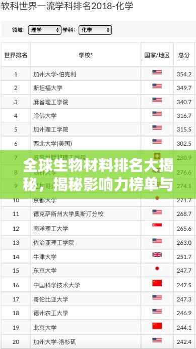 全球生物材料排名大揭秘,揭秘影响力榜单与背后的力量